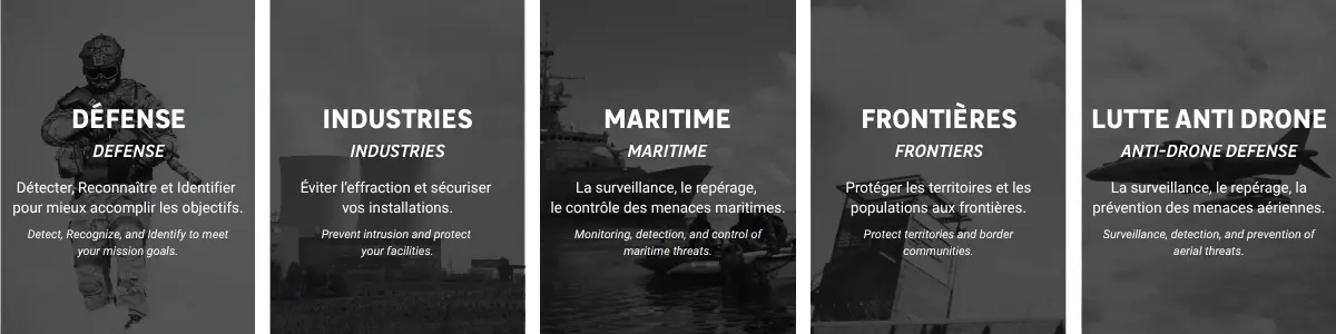 Whatever your theatre of operations, armed forces, internal security or sensitive sites, we are here to support you in meeting all your needs for Detection, Recognition and Identification.